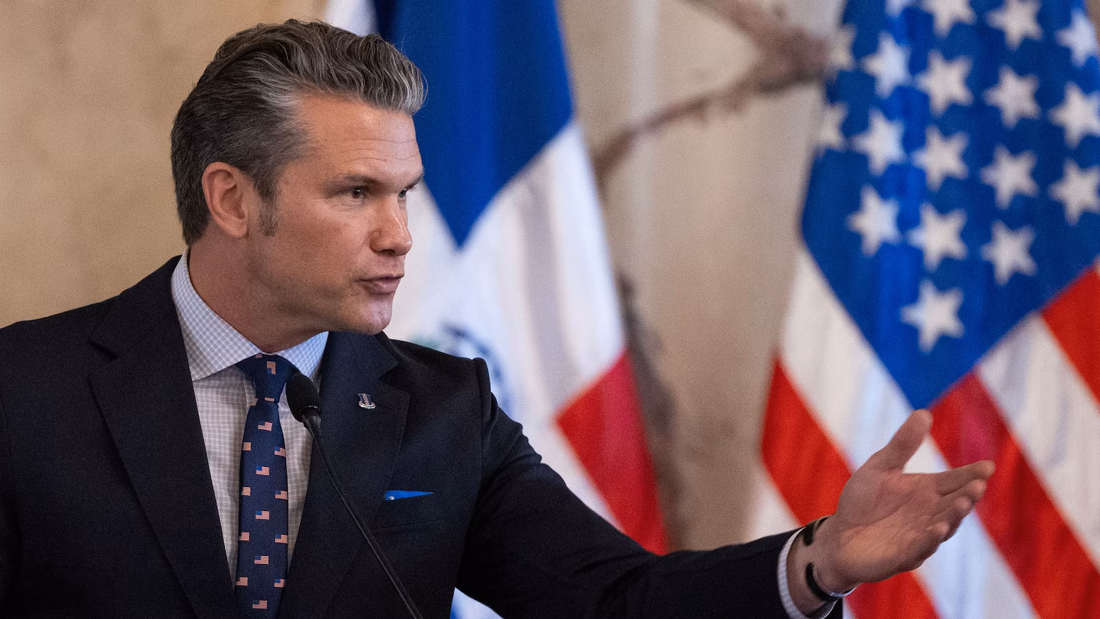 Secretary of Defense Pete Hegseth speaks during a press conference with Dominican Republic President Luis Abinader at the National Palace in Santo Domingo, Dominican Republic, November 26, 2025.
