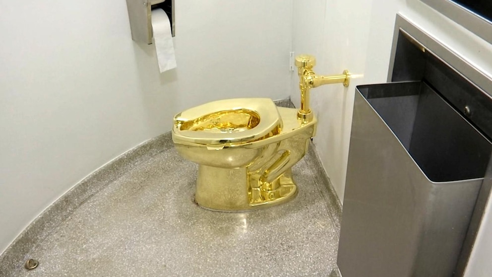 The golden toilet, titled “America,” was intended to be a pointed satire about excessive wealth. The lavatory was fully functioning, and prior to the theft, visitors to the exhibition could book a three-minute appointment to use it.