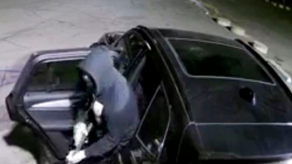 Four men were later arrested at a hospital where the wounded suspect was being treated. The getaway car had been stolen in Las Vegas and contained stolen weapons, authorities said.