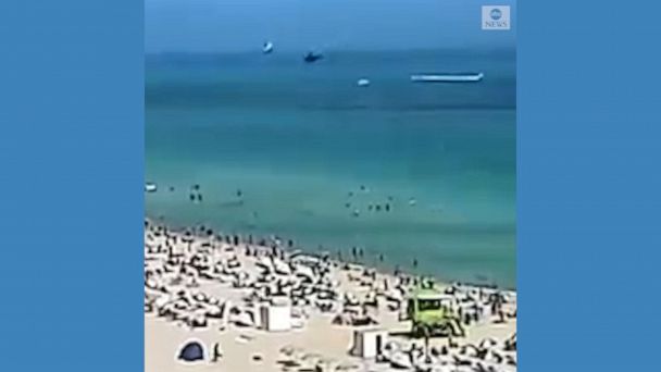Dramatic video captured the moment a helicopter crashed into the ocean off the coast of Miami Beach, near where people were swimming.