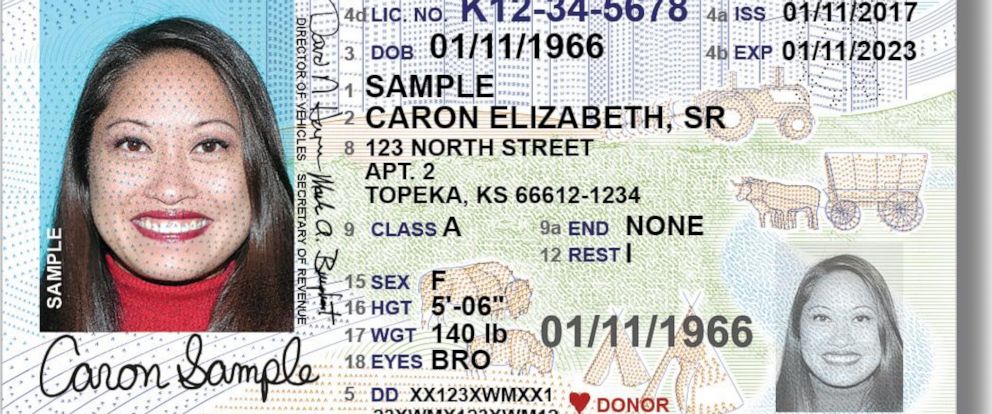 This image from the Kansas Department of Revenue shows a sample driver’s license issued by the state’s Division of Vehicles, first produced in June 2021. A new Kansas law will prevent transgender people from changing the listing for their sex on the license to match their gender identities. (Kansas Department of Revenue via AP)
