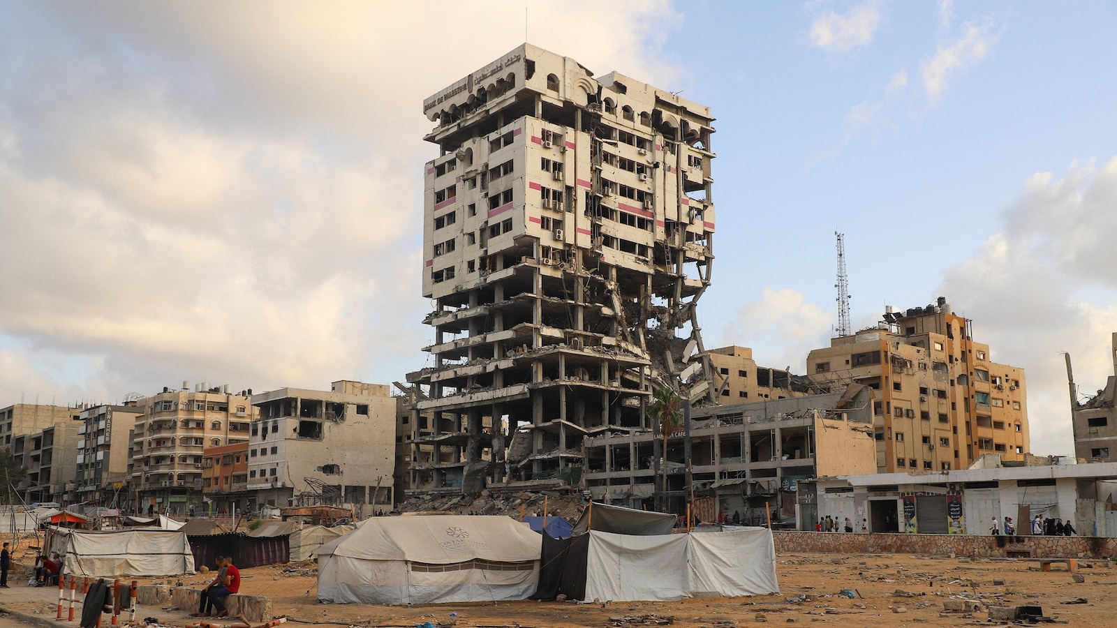 By the time the afternoon began, an Israeli airstrike had reduced that building and another one-time residential high-rise like it to piles of rebar and concrete.
