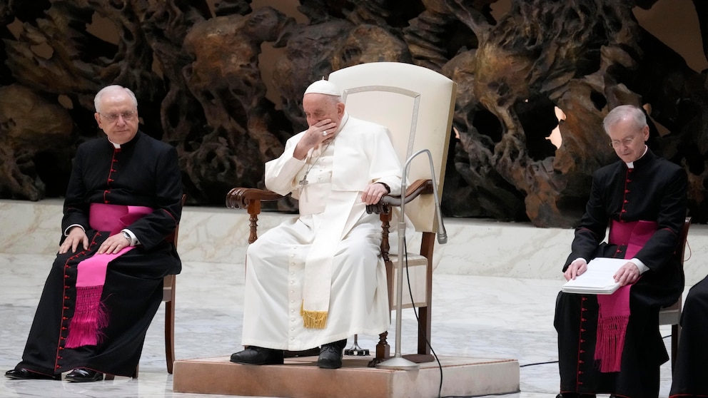 VATICAN CITY — VATICAN CITY (AP) — Pope Francis presided at his weekly audience with the public at the Vatican, but he said that he’s still unwell and asked an aide to read his remarks for him on Wednesday, a day after canceling an overseas trip.