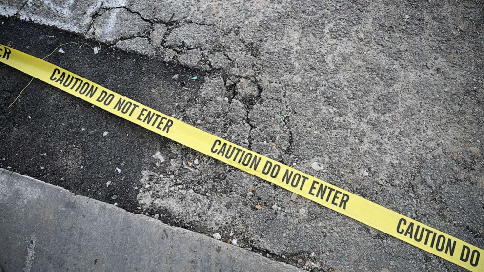 Police tape is seen on the ground in Monterey Park, California, on January 22, 2023.
