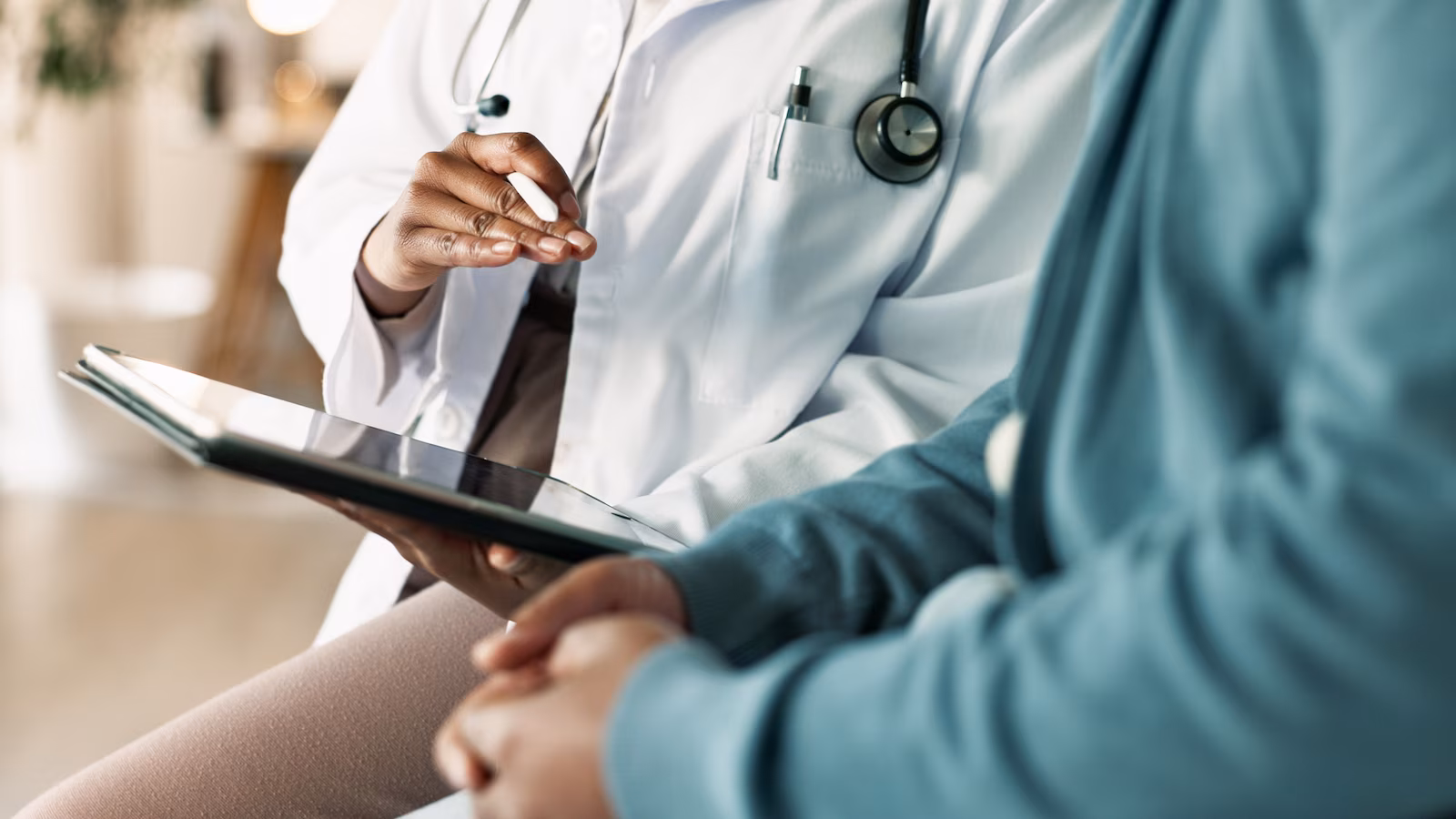 Stock photo of a doctor speaking with a patient.