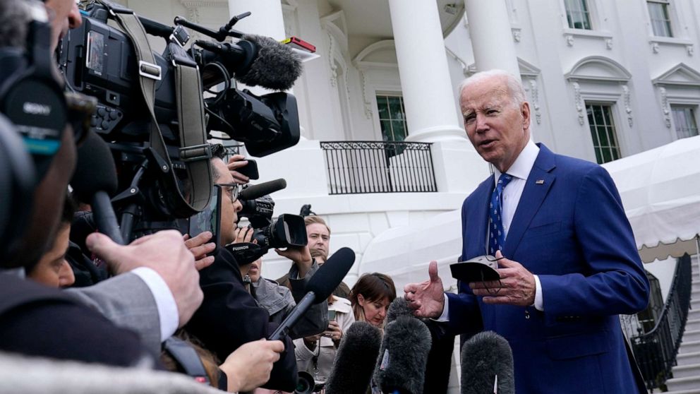 President Joe Biden talks with reporters outside of the White House, Jan. 4, 2023, in Washington.