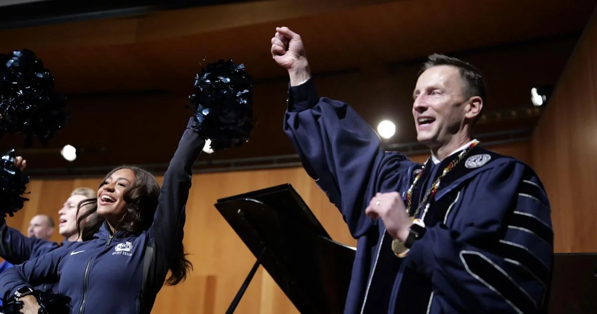 At the conclusion of the ceremony the new president explained that when he attempted to play USU’s traditional Scotsman song by ear on Instagram he fell short, but several followers sent him the original music. Since then he practiced the piece, and he concluded the inauguration by sitting at a piano on stage to play a rousing — and flawless — rendition of it, to enthusiastic applause.