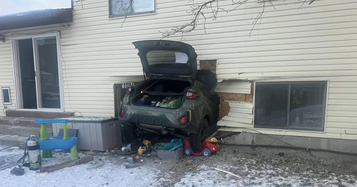 The accident occurred at approximately 5:02 p.m. when dispatchers received reports of a vehicle vs. house crash. First responders arrived to find a green Subaru wedged into the side of the residence near 1215 East 2200 North.