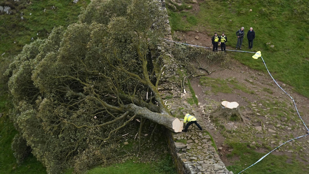 The tree was one of the main landmarks along Hadrian’s Wall, a UNESCO World Heritage Site built nearly 2,000 years ago when Britain was part of the Roman Empire to guard its northwestern frontier.