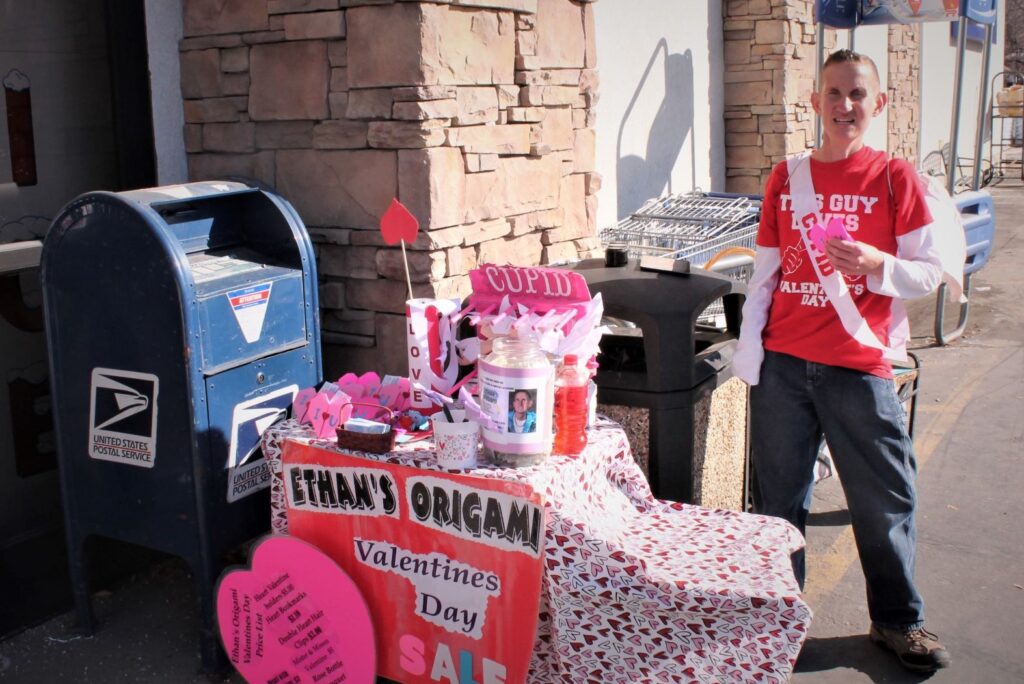 When Ethan steps into any store, clerks warmly greet him. He always has a smile on his face and if he likes the music over the stores sound system he does his Ethan shuffle. His claim to fame in his hometown is his origami. When he was at Primary Children’s Hospital in Salt Lake City going through cancer treatments a nurse taught him how to fold cranes from paper.