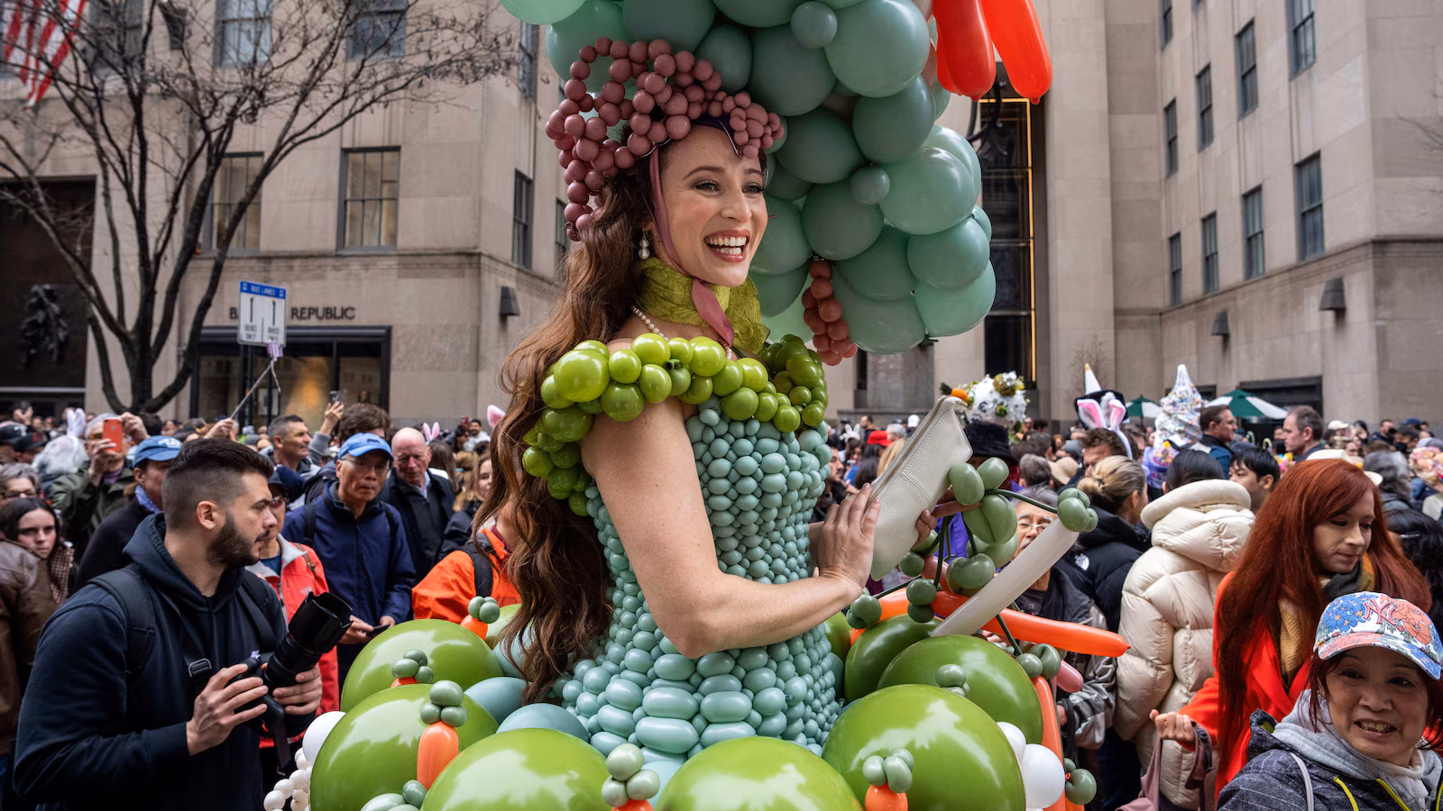 People wearing decorated hats and costumes participated in an Easter parade on Fifth Avenue in New York on Sunday.