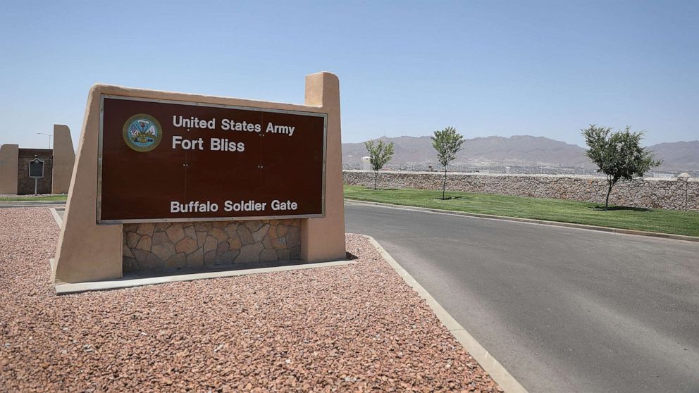 In this June 25, 2018, file photo, an entrance to Fort Bliss is shown, in Fort Bliss, Texas.