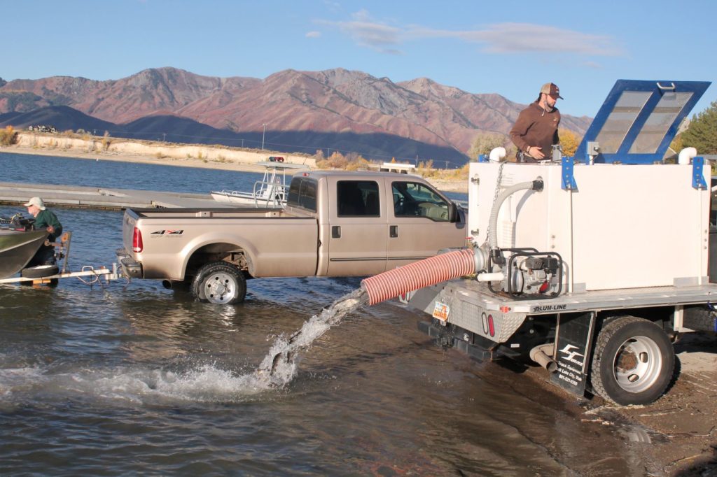 Tyler White fish culture biologist for Utah Division of Wildlife Resources helped stocks Hyrum Reservoir with trout in October of 2020.