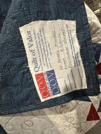 Labels were sewn into the Quilts of Valor with information on who made them.