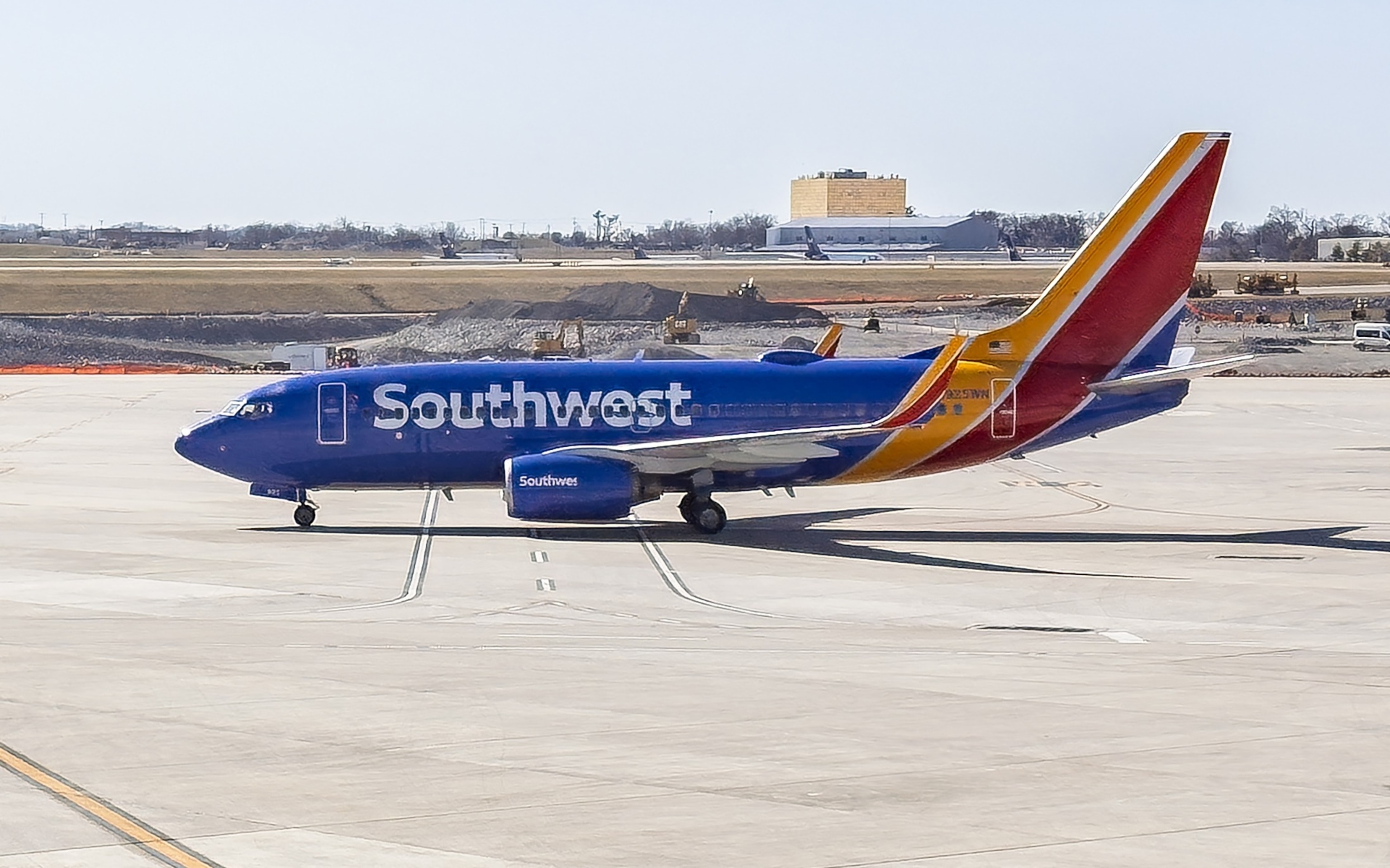 A Southwest Airlines airplane on the tarmac at Nashville International Airport, in Nashville, Tn.