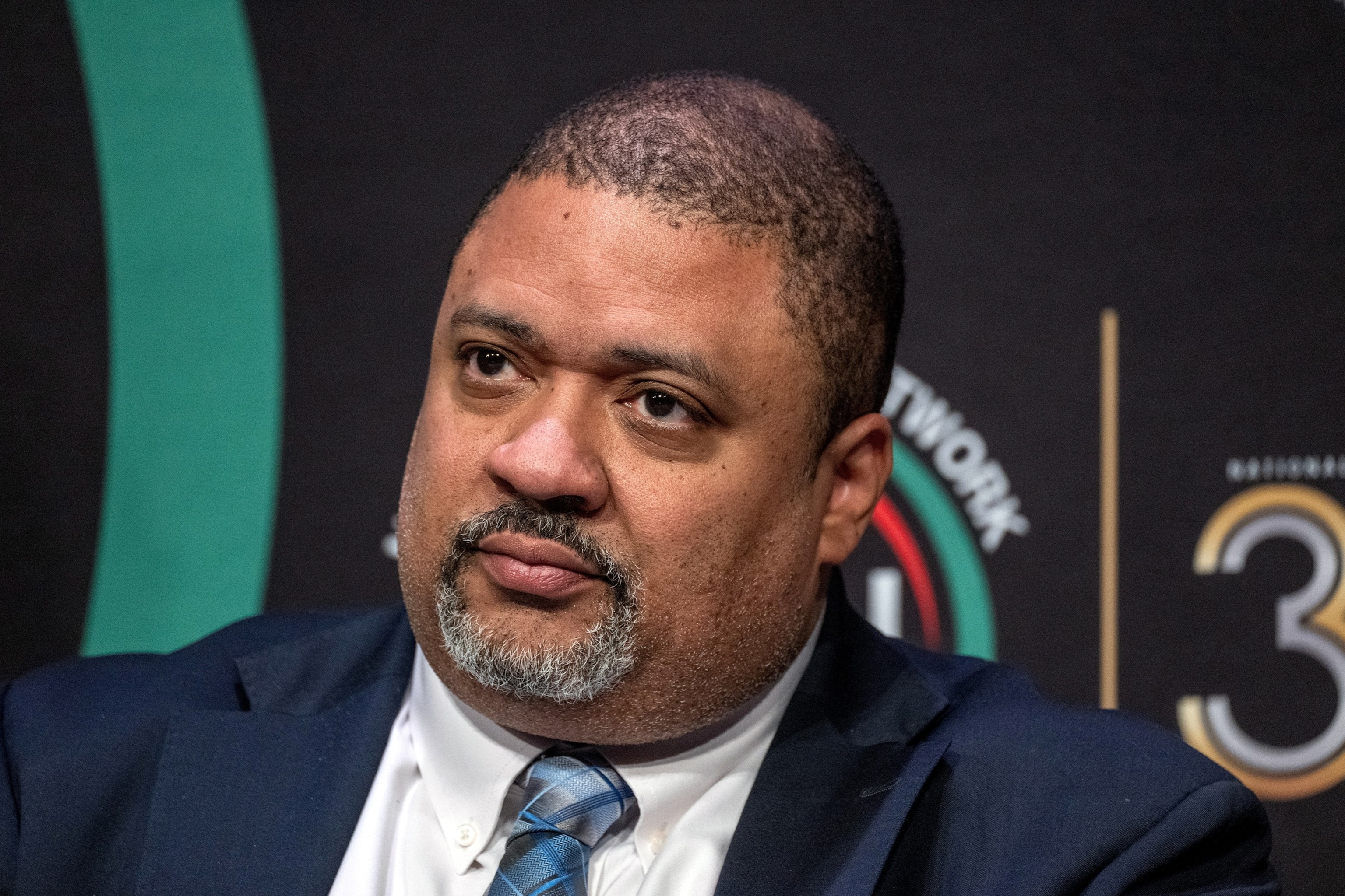 Alvin Bragg, Manhattan district attorney, speaks during the National Action Network (NAN) 35th Anniversary Convention in New York, April 8, 2026.