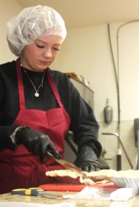 On Wednesday they were elbows deep getting pie crusts ready for cooking while some eight turkeys were cooking in the oven.