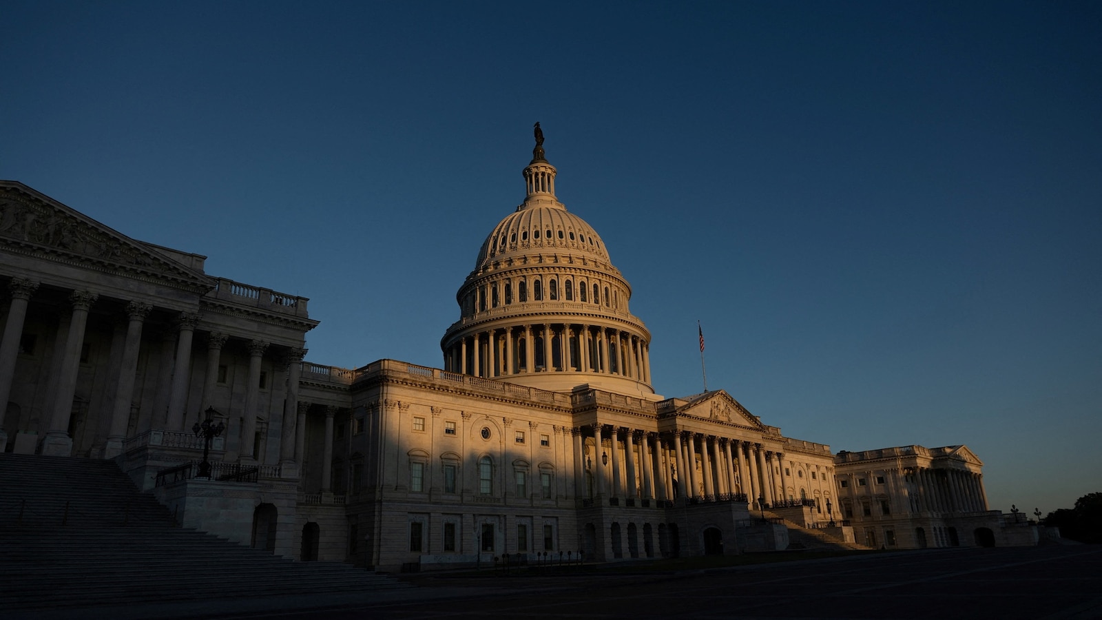 The sun casts a shadow along the U.S. Capitol, on the fifth day of a partial government shutdown, in Washington, D.C., U.S., October 5, 2025.
