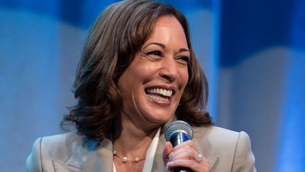 FILE – Vice President Kamala Harris smiles as she speaks at the National Urban League Annual Conference, on July 22, 2022, in Washington. Harris, who appeared early Tuesday, Oct. 11 on NBC’s “Late Night with Seth Meyers” in a taped appearance, reflected on how her life has changed since she got the job — including a shortage of emojis — and to talk up the need to vote in the midterm elections. It was her first late-night network TV appearance since becoming vice president. (AP Photo/Alex Brandon, File)
