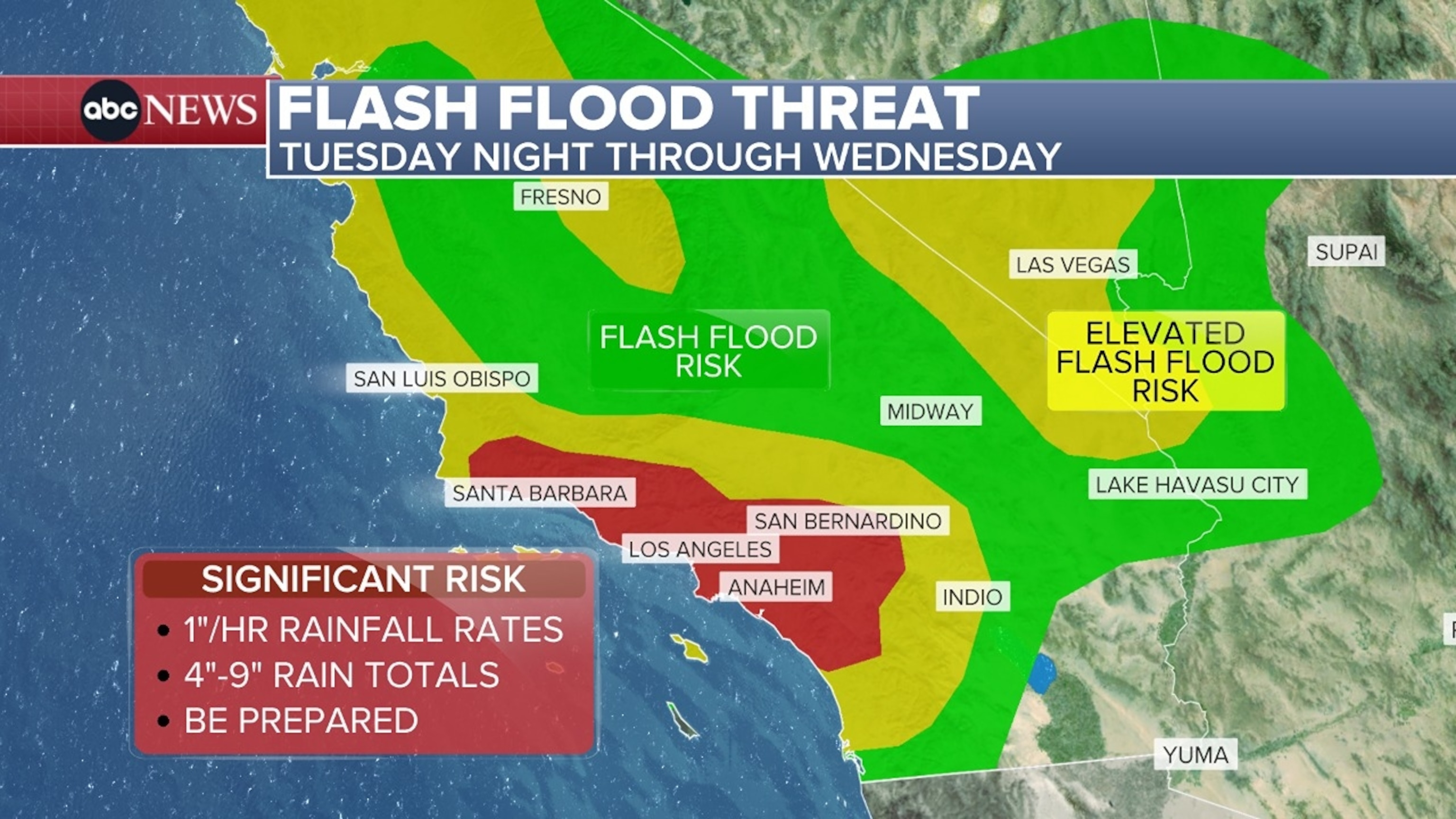 Some parts of Southern California could see 9 inches of rain just on Tuesday night and Wednesday. Debris flows and landslides are also possible.