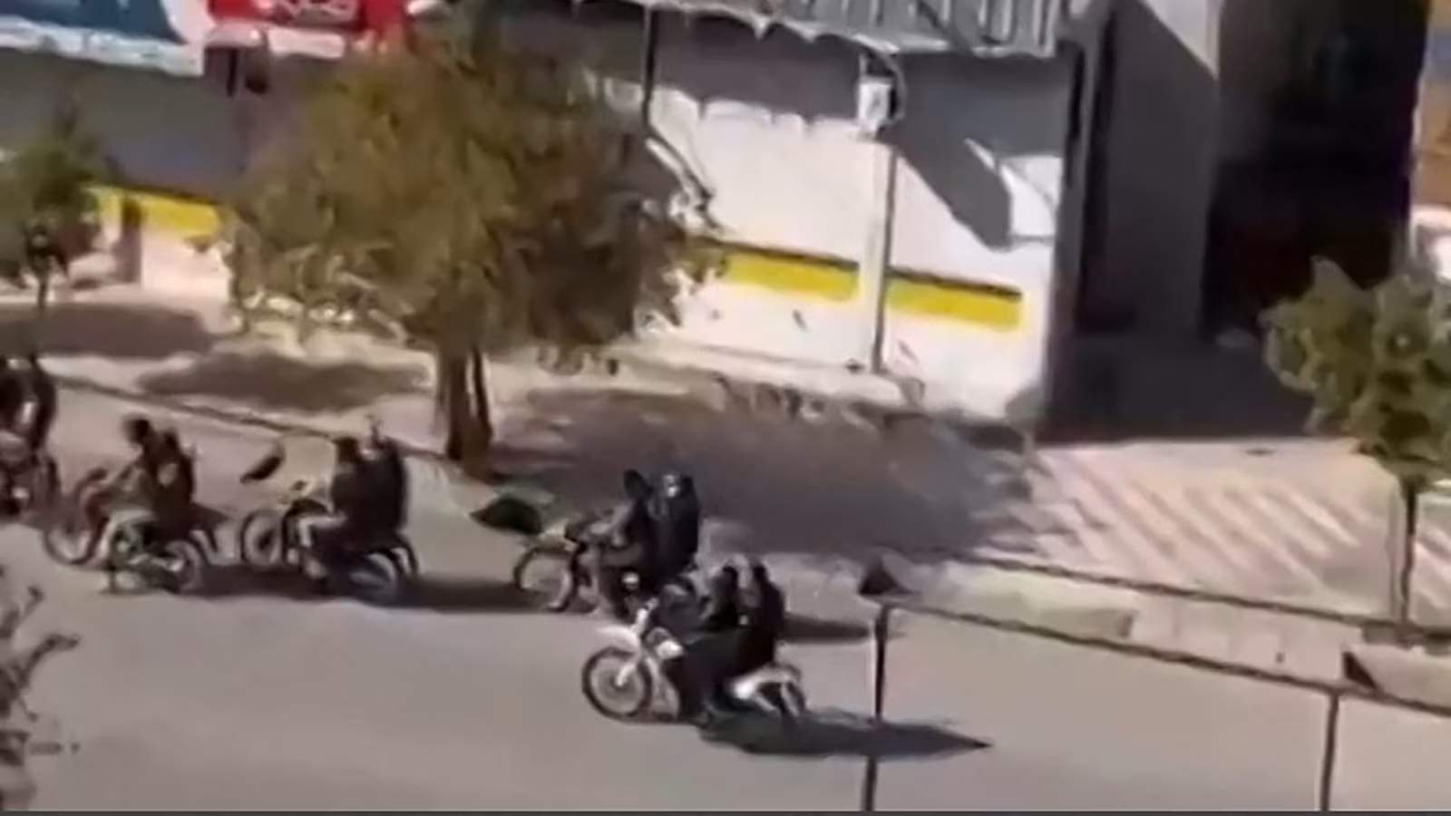 This video grab taken from UGC images on Jan. 11, 2026, and claimed to be taken by those who posted it on Jan. 10, 2026, and verified by AFPTV teams in Paris on Jan. 11, shows Iranian armed security forces on motorcycles firing ammunition in the air on Hazraty street in Kazerun, a city west of Shiraz.