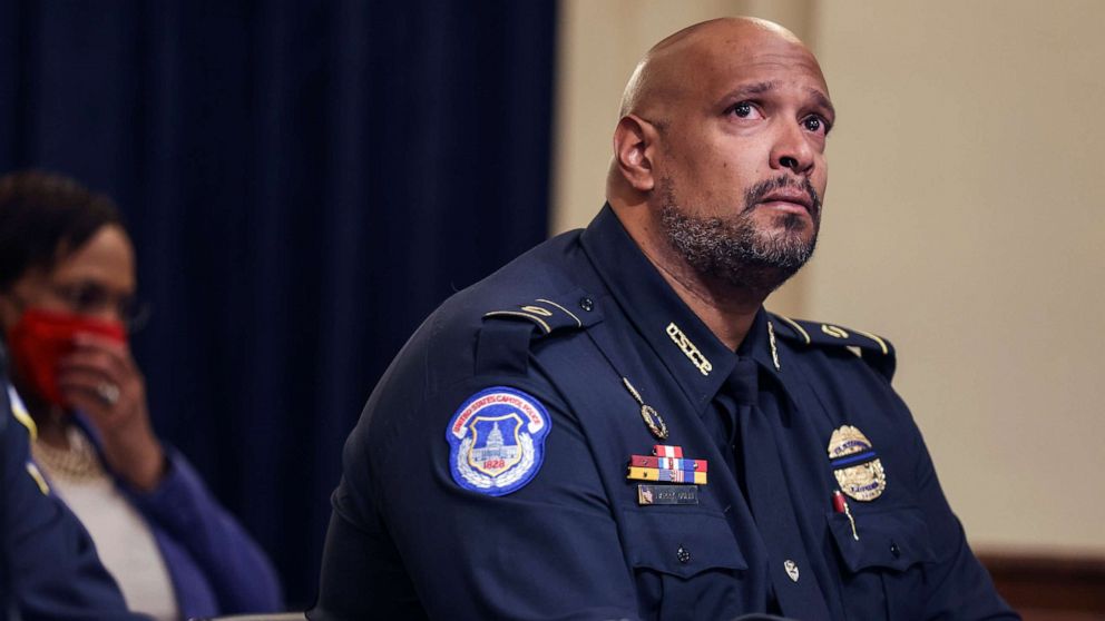 U.S. Capitol Police officer Harry Dunn becomes emotional as he testifies before the House Select Committee investigating the January 6 attack on the U.S. Capitol, July 27, 2021 at the Canon House Office Building in Washington, D.C.