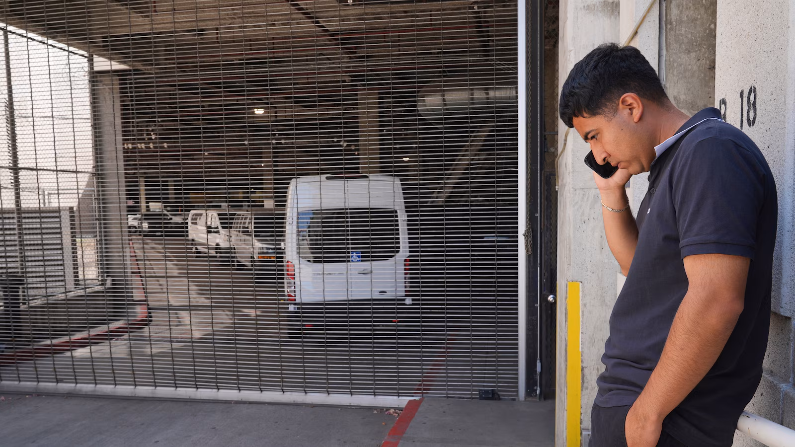 Alejandro Barranco talks on his cell phone outside the Metropolitan Detention Center, where is father Narciso is detained, on Monday, June 23, 2025, in Los Angeles.