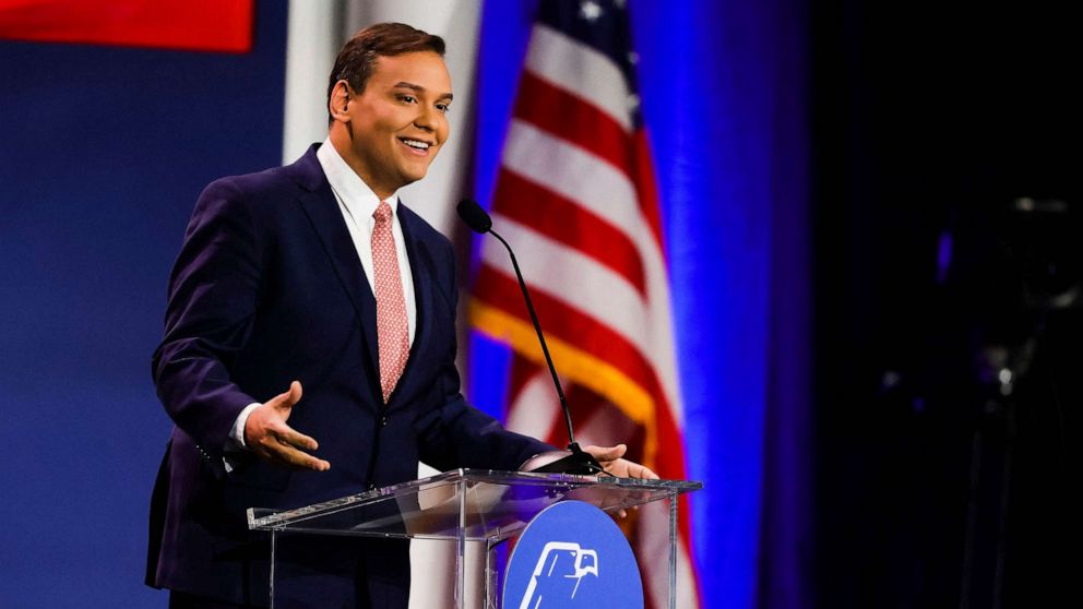 US Representative-elect George Santos speaks at the Republican Jewish Coalition Annual Leadership Meeting, Nov. 19, 2022, in Las Vegas.