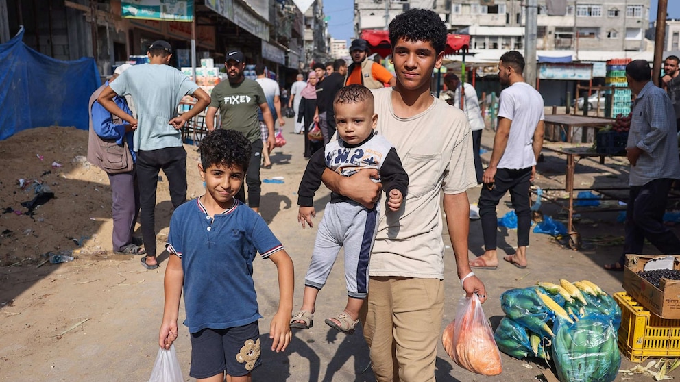People buy fresh produce at a market in Gaza city, Oct. 10, 2023.