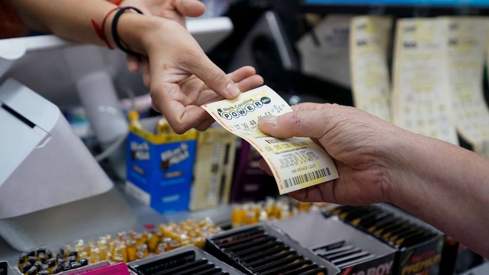 A store manager sells a Powerball ticket to a customer at Cigarettes and More in Pineville, North Carolina, on Oct. 4, 2023.