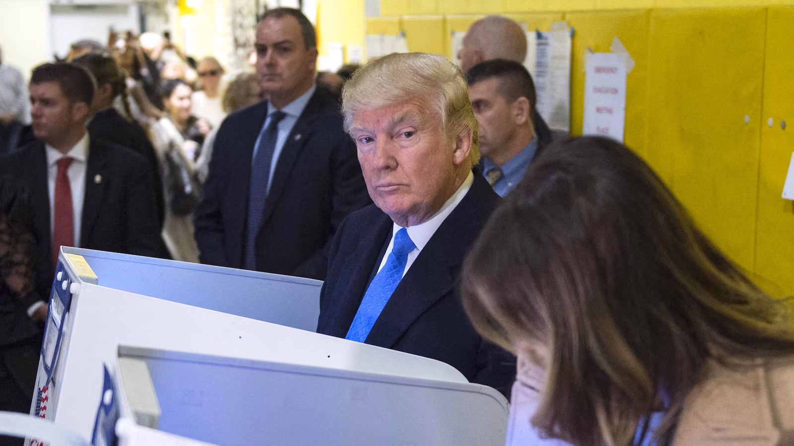 In this Nov. 8, 2016, file photo, Republican presidential nominee Donald Trump and his wife Melania fill out their ballots at a polling station in a school in New York, during the 2016 presidential elections.