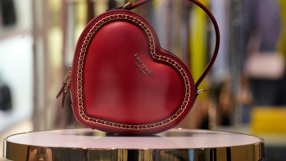 File – A Kate Spade bag is displayed in the window of a Kate Spade store in Pittsburgh on Jan. 30, 2023. The Commerce Department releases U.S. retail sales data for August.(AP Photo/Gene J. Puskar, File)