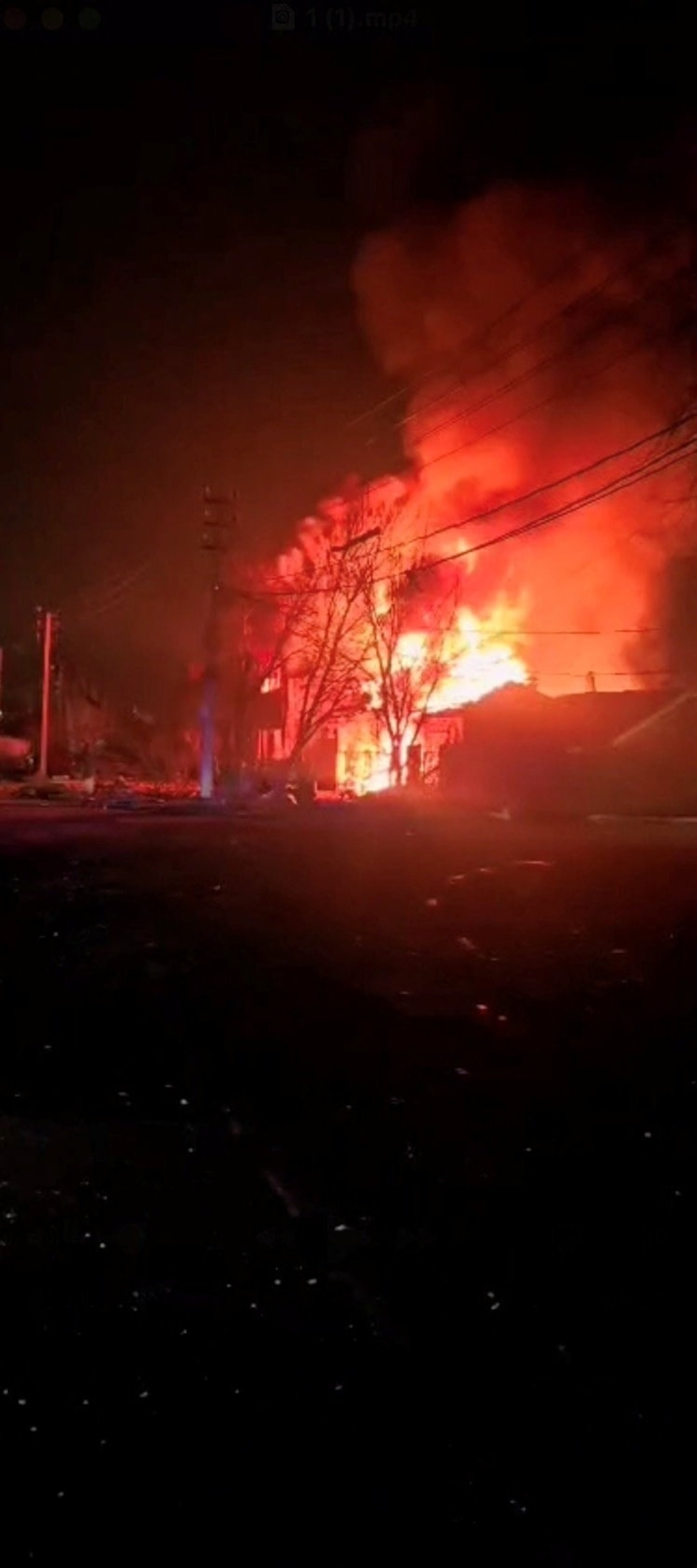 This photo taken on March 11, 2025 shows a damaged residential building in Sapronovo, Moscow Region, Russia.