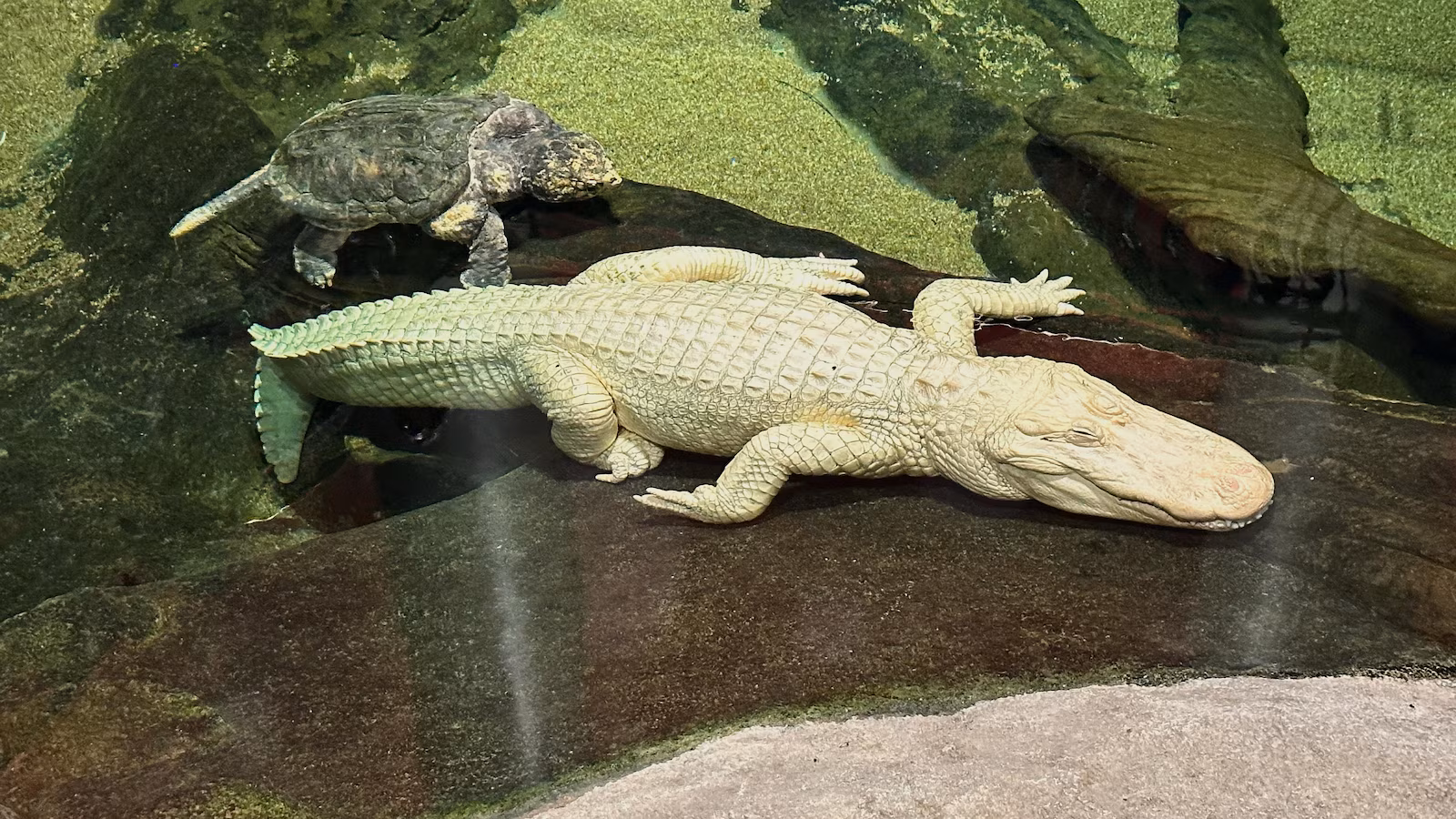 Albino alligators do not survive for long in the wild, but American alligators can live up to 70 in captivity. The museum rang in Claude’s 30th birthday in September with festivities, speeches and a special alligator birthday cake made of fish and ice.