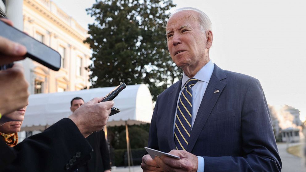 President Joe Biden speaks to reporters as he departs the White House on Jan. 11, 2023, in Washington, D.C.