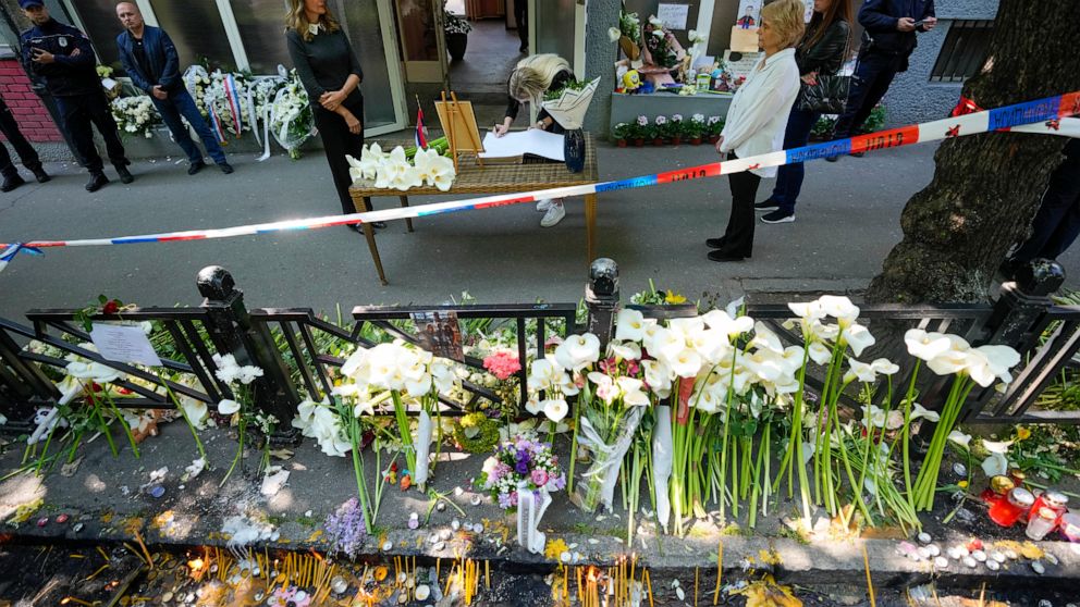 The shooting happened in the Vladislav Ribnikar elementary school in central Belgrade when a 13-year-old boy took his father’s gun and opened fire, initially killing eight children and a school guard, and wounding six students and a teacher.