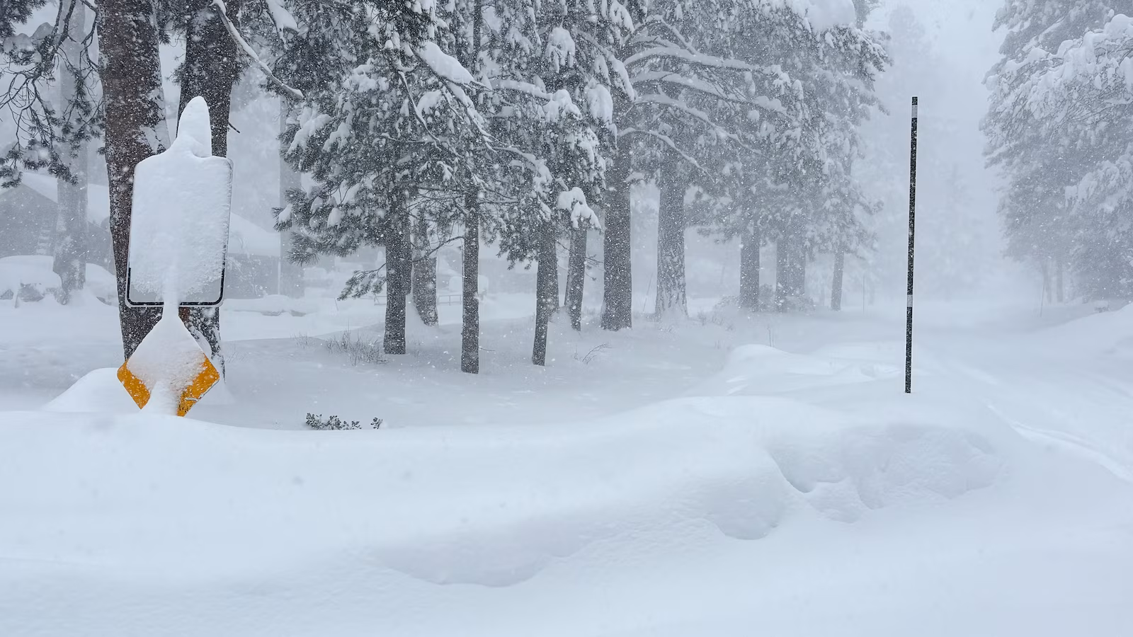 The California Highway Patrol’s Truckee office warned that high winds are “creating full whiteout conditions” across the Donner Summit.