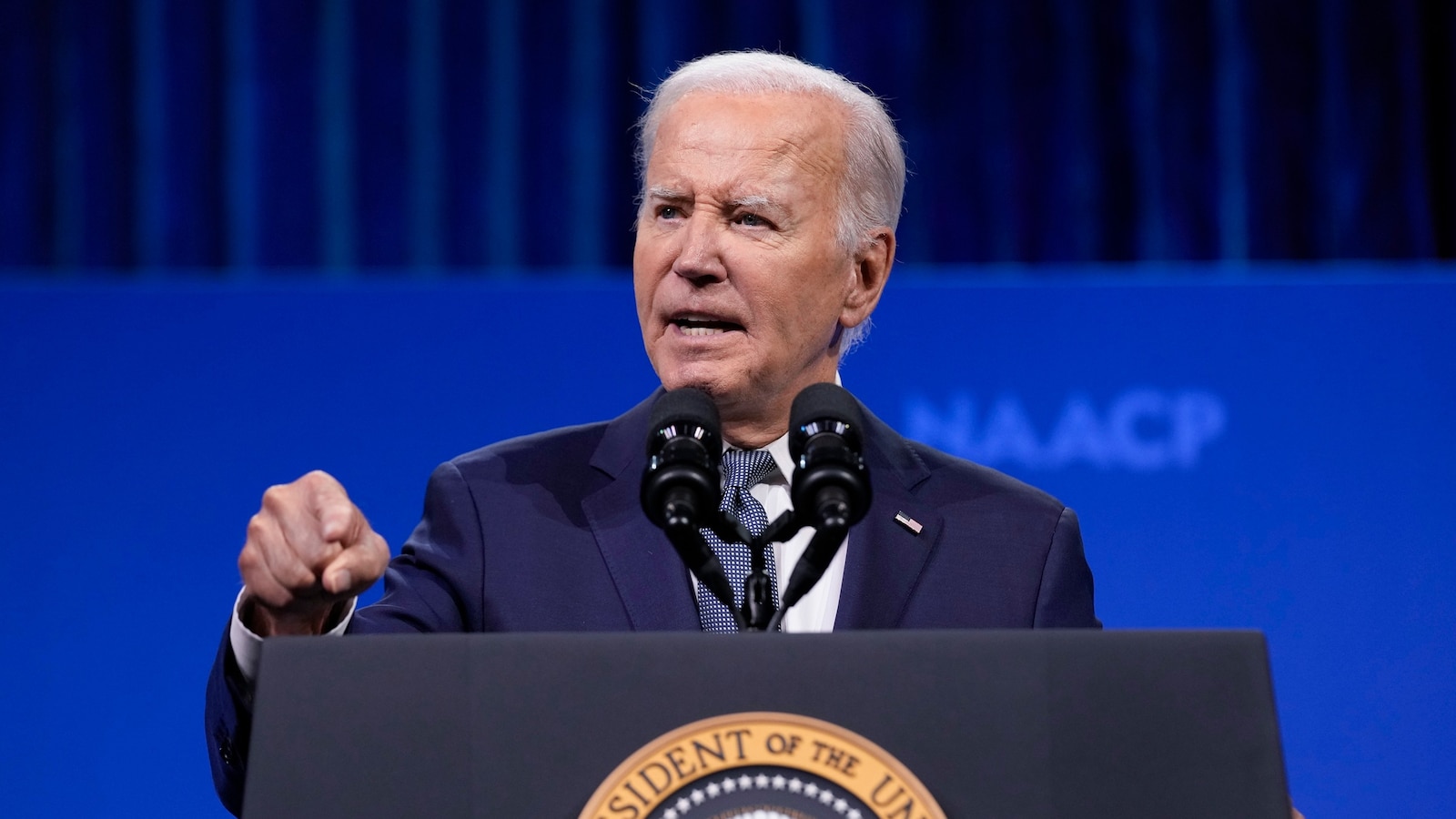 President Joe Biden speaks at the 115th NAACP National Convention in Las Vegas, July 16, 2024.