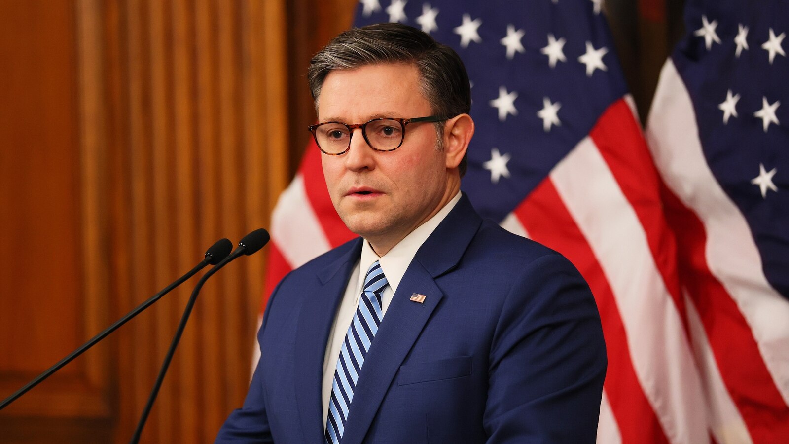House Speaker Mike Johnson speaks in the Rayburn Reception Room after formally unveiling the Frederick Douglass Press Gallery at the Capitol, Feb. 12, 2026.