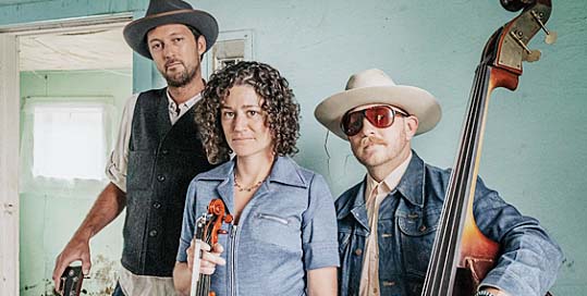 The Stillhouse Junkies played to a packed house at the Cache Bar in Logan on Oct. 15. They are (from left) Fred Kosak on guitar, Alissa Wolf on fiddler and Cody Tinnin on upright bass (Image courtesy of Facebook).