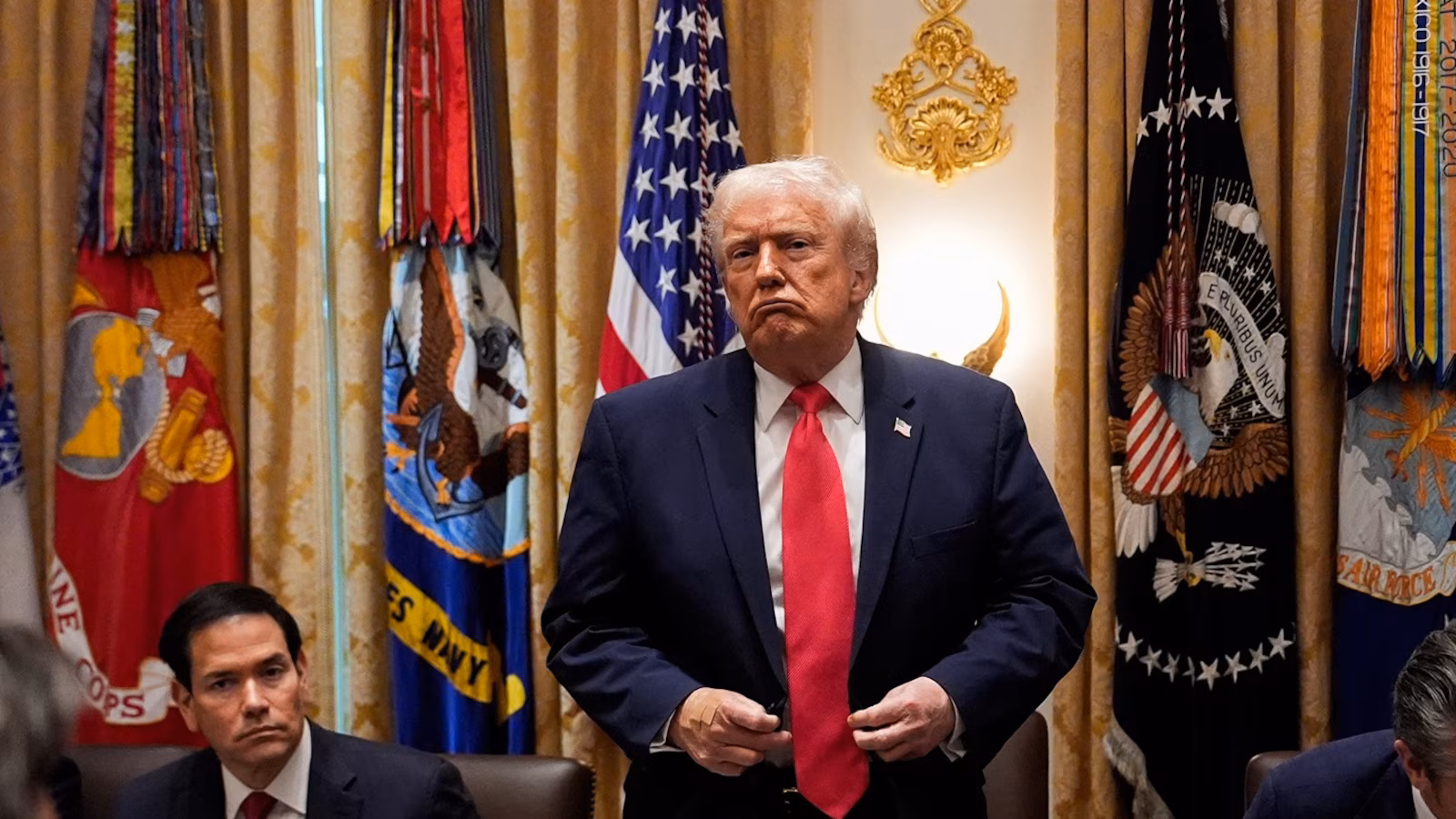 President Donald Trump stands up to depart following a Cabinet meeting at the White House, Tuesday, Dec. 2, 2025, in Washington.