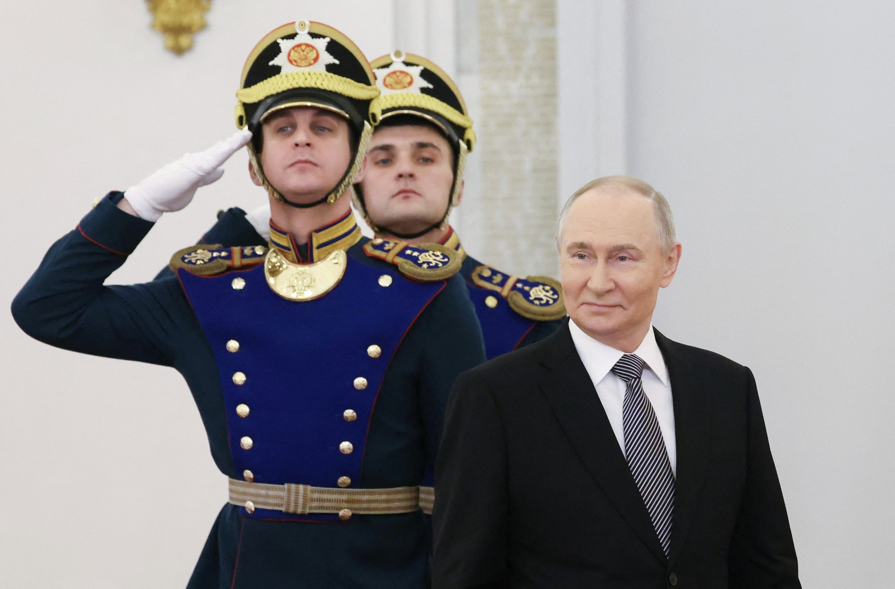 In this pool photograph distributed by the Russian state agency Sputnik, Russia’s President Vladimir Putin attends a ceremony at the Kremlin in Moscow, Russia, on Dec. 9, 2025.
