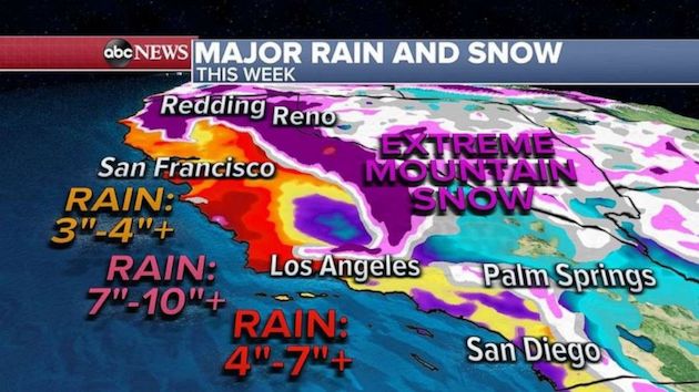 Additionally, there is an excessive rainfall forecast for the week and the region will become more susceptible to flash flooding with locally over 10 inches of snow possible in California this week alone.
