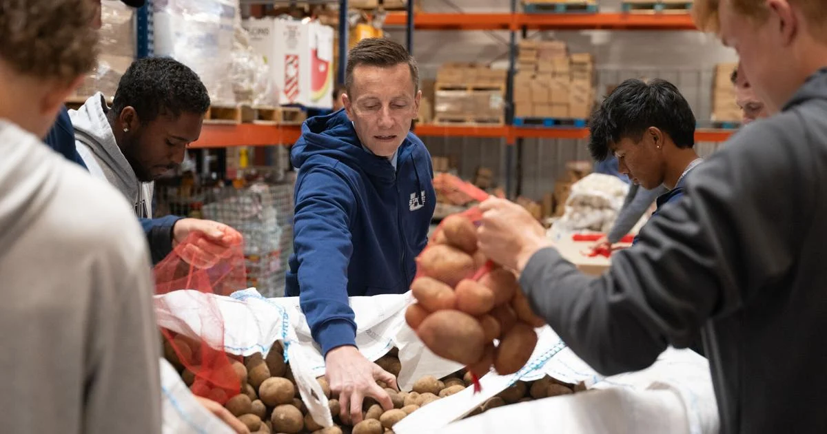 “Sometimes the first day on the job is a little slow and you’re getting access to things,” said Mortensen. “So, there was a no better way to spend it by sorting potatoes with the Aggie Tennis Team.”