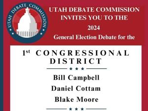 The debate in the 1st Congressional District will feature incumbent, two-term U.S. Rep. Blake Moore (R-UT), Democratic challenger Bill Campbell and Daniel R. Cottam, who is a Libertarian.