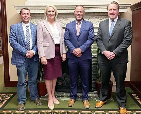 The new Republican leadership of the Utah House of Representatives pose for a group photo on Nov., 15. They are (from left) Rep. Casey Snider (R-Paradise), assistant majority whip; Rep. Karianne Lisonbee (R-Clearfield), majority whip; Rep. Mike Schultz (R-Hooper), Speaker of the House; and Rep. Jefferson Moss (R-Saratoga Springs), majority leader (Image courtesy of Facebook).