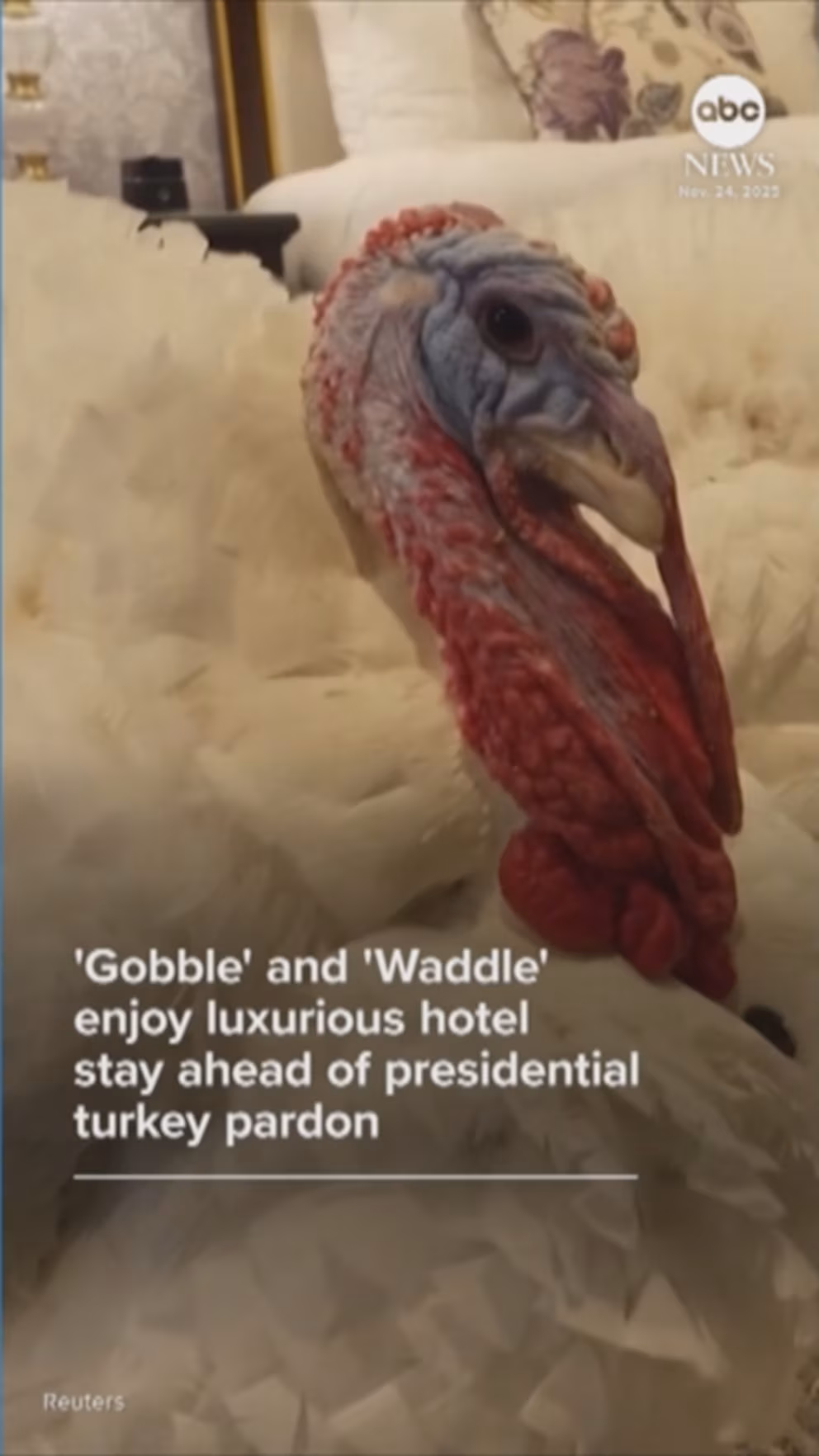 Ahead of Tuesday’s annual presidential turkey pardon ceremony, “Gobble” and “Waddle” are spending the night at the Willard Hotel in Washington, D.C., after arriving from North Carolina on Monday.