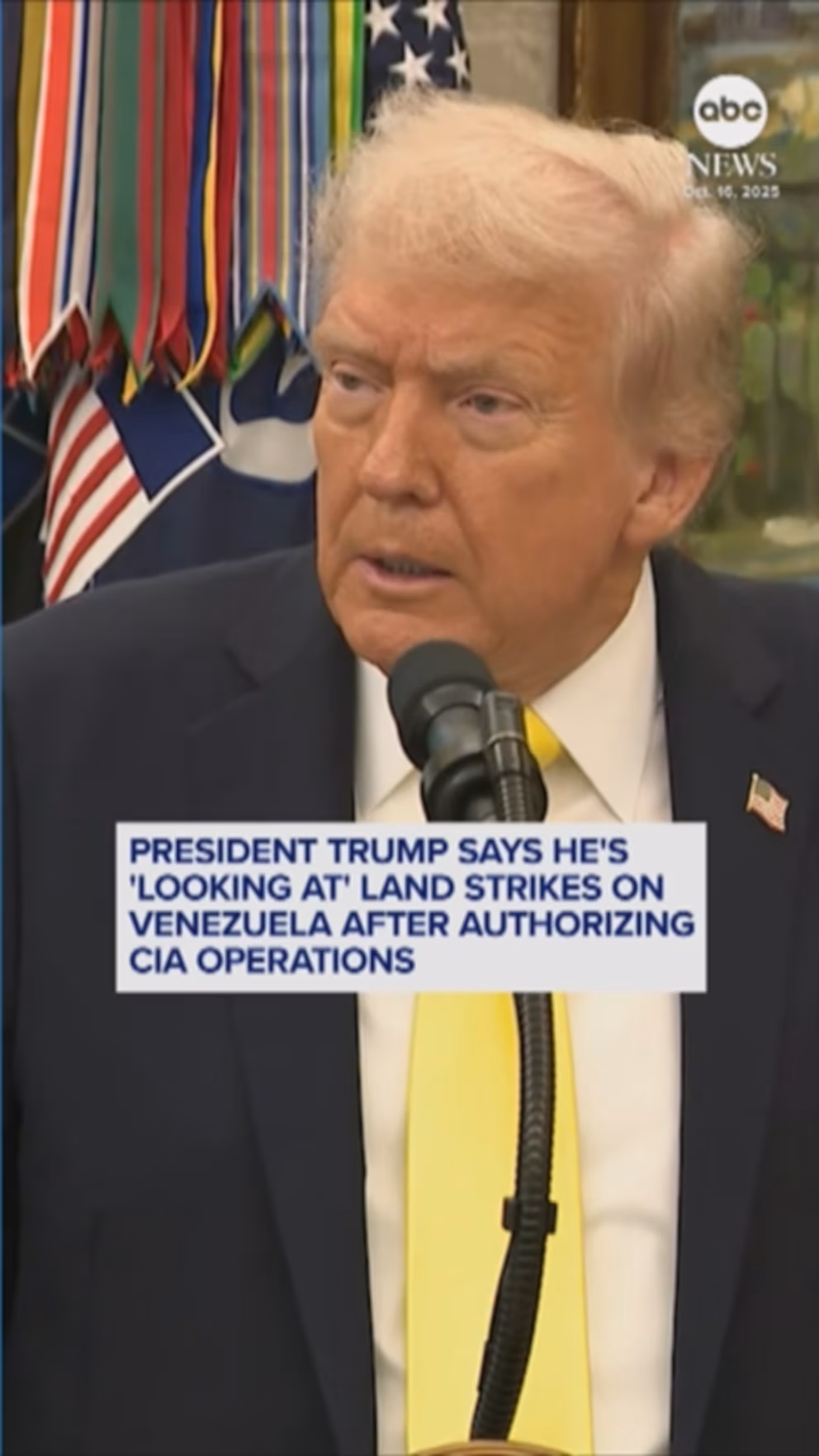 Trump says he’s ‘looking at’ land strikes on Venezuela President Donald Trump on Wednesday confirmed he had authorized CIA action in Venezuela and indicated his administration is exploring land strikes inside the South American country. October 16, 2025 Source link Post navigation Trump says he and Putin plan to meet again to discuss war in Ukraine B-52s fly off coast of Venezuela in show of force by Trump