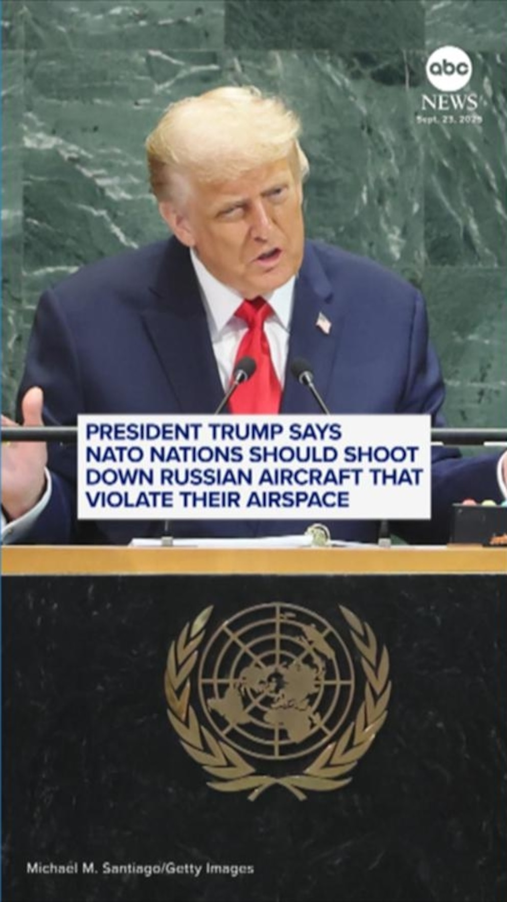 President Donald Trump said during his bilateral meeting with Ukrainian President Volodymyr Zelenskyy that NATO countries should shoot down Russian aircraft if they enter their airspace.