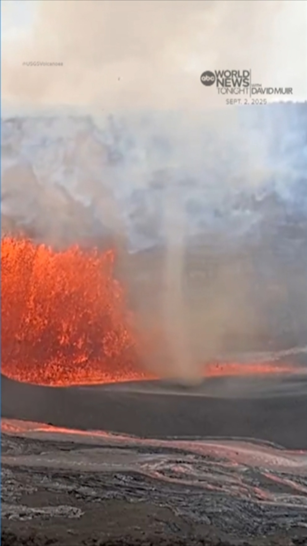 ‘Volnado’ forms near Kīlauea volcano’s active lava fountain A live camera captured the moment a whirlwind formed kicking up loose ash deposits. Whirlwinds are caused by the chaotic and turbulent mixing of hot and cold air, according to USGS. September 4, 2025 Source link Post navigation Applications for U.S. jobless benefits rise last week but remain in healthy range Giorgio Armani, legendary Italian fashion designer, dies at 91